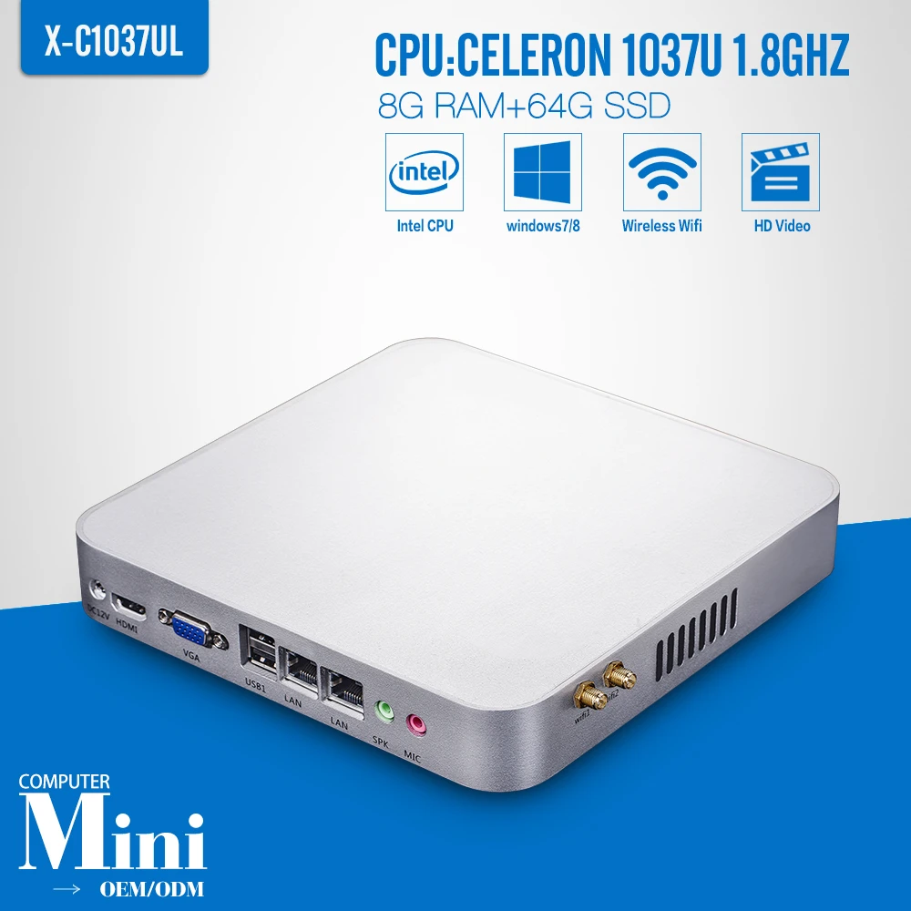 Main Features : Mini computer Celeron C1037U 8GB RAM 64GB SSD+wifi Industrial Computer Thin Client Mini Computer Can Run Linux/Ubuntu/Window 7