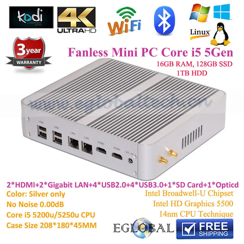 Article Review : Fanless Mini PC Windows 10 i5 5257u Iris 6100 Dual Core 16GB RAM 128GB SSD 1TB HDD Pocket PC 2Lan+2HDMI+SD Card+Optical Fiber