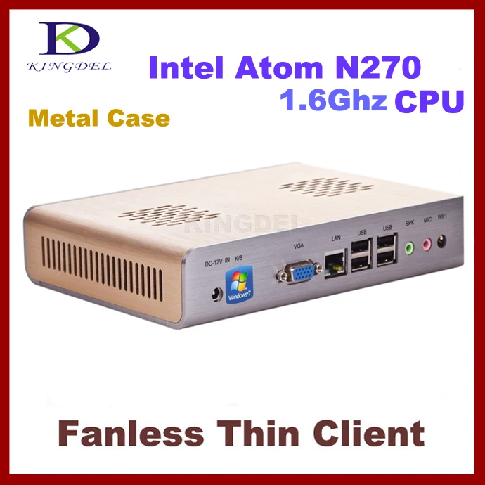 Main Features : NEW Thin Client Computer, Fanless Mini PC with Intel Atom N270 1.60Ghz, 1GB RAM, 80GB HDD, 32 Bit, 720P HD, 3D Games supported