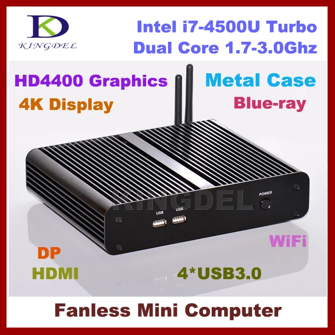 Main Features : 8G RAM+64G SSD+1T HDD,Fanless core i7 4500U embedded computer,Max 3.0Ghz,HTPC,4K DP,Intel HD4400 Graphics,300M WIFI Windows 7